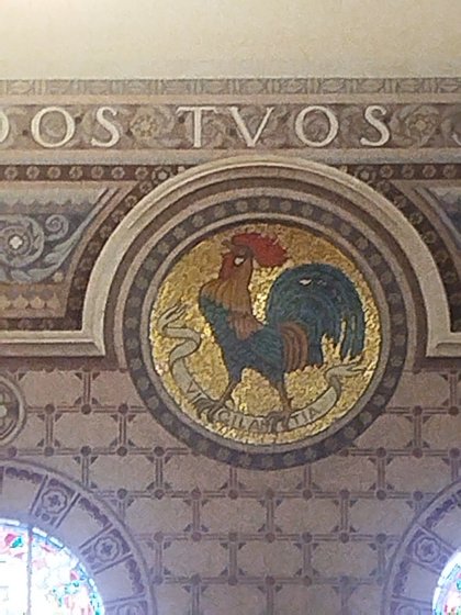 Le coq en mosaïques, très joli et brillant, rénové récemment grâce au loto du Patrimoine de Stéphanne Berne, grand présenteur de programmes télévisés autour de l'Histoire.