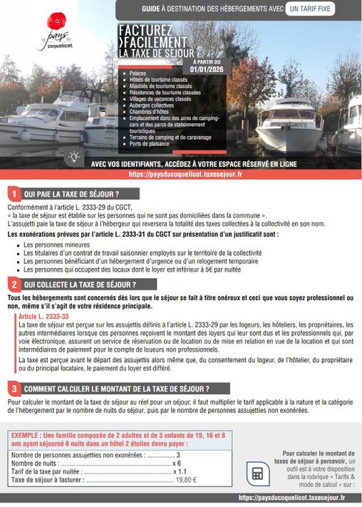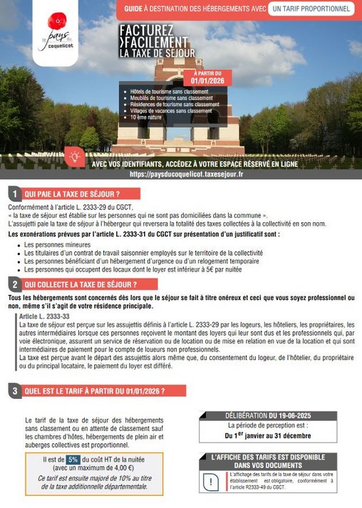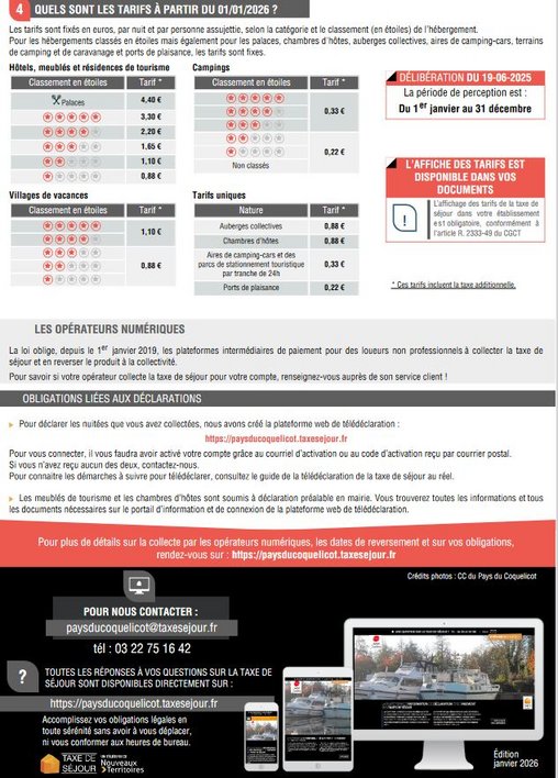 Ci-dessous, vous trouverez les tarifs de la taxe de séjour 2025 pour la Communauté de communes du Pays du Coquelicot.