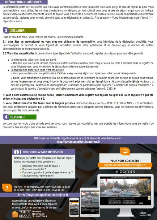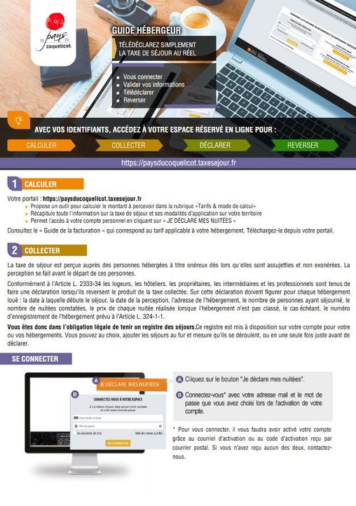 Si vos clients réservent en direct, c'est à vous de collecter puis de reverser la taxe de séjour à la Communauté de Communes par le biais d'une plateforme dédiée (identifiants à récupérer auprès de l'office de tourisme).